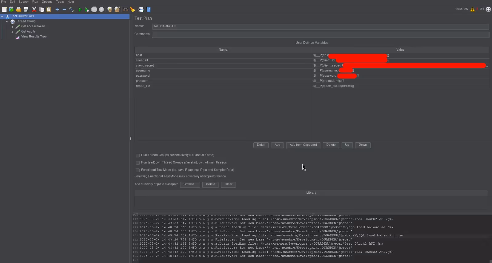 On va en suite envoyer le fichier Test OAuth2 Api.jmx sur chacun des serveurs à tester, et exécuter la commande jmeter :