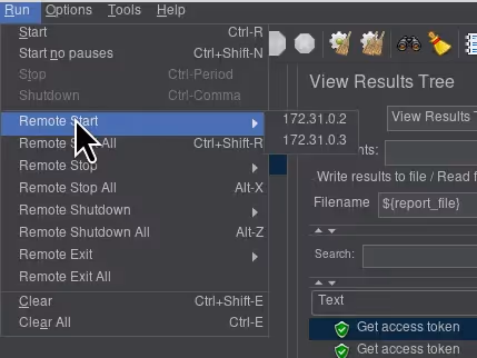 Nos serveurs se retrouveront alors dans l’interface de JMeter dans menu Run > Remote Start :