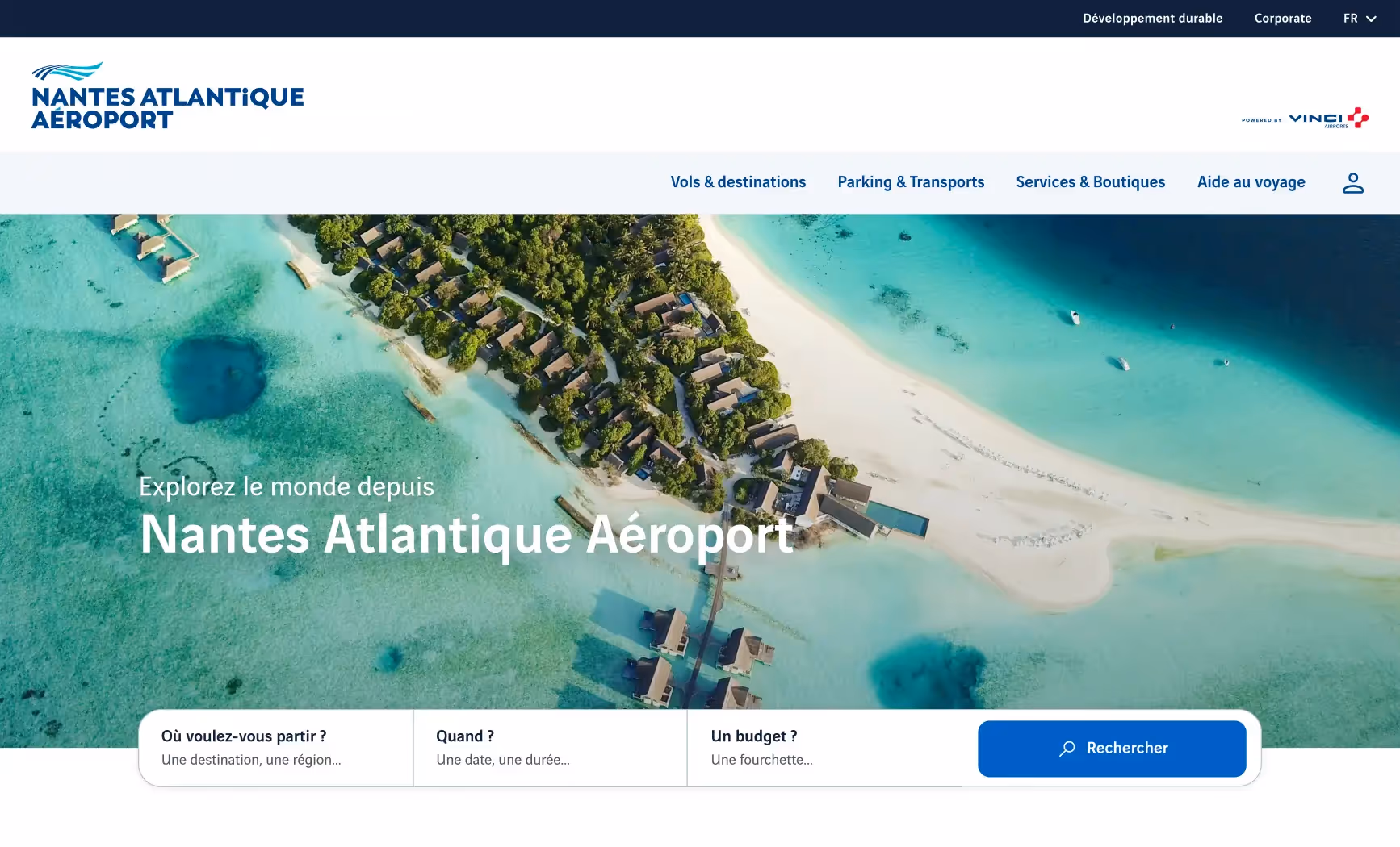 En 2022, l’aéroport de Nantes a décidé d’opérer une refonte de son site internet afin d'adopter une approche transactionnelle en réalignant la nouvelle plateforme avec les modes & parcours de consommation de ses clients (accessibilité, eco-friendly, mobile first, etc.).