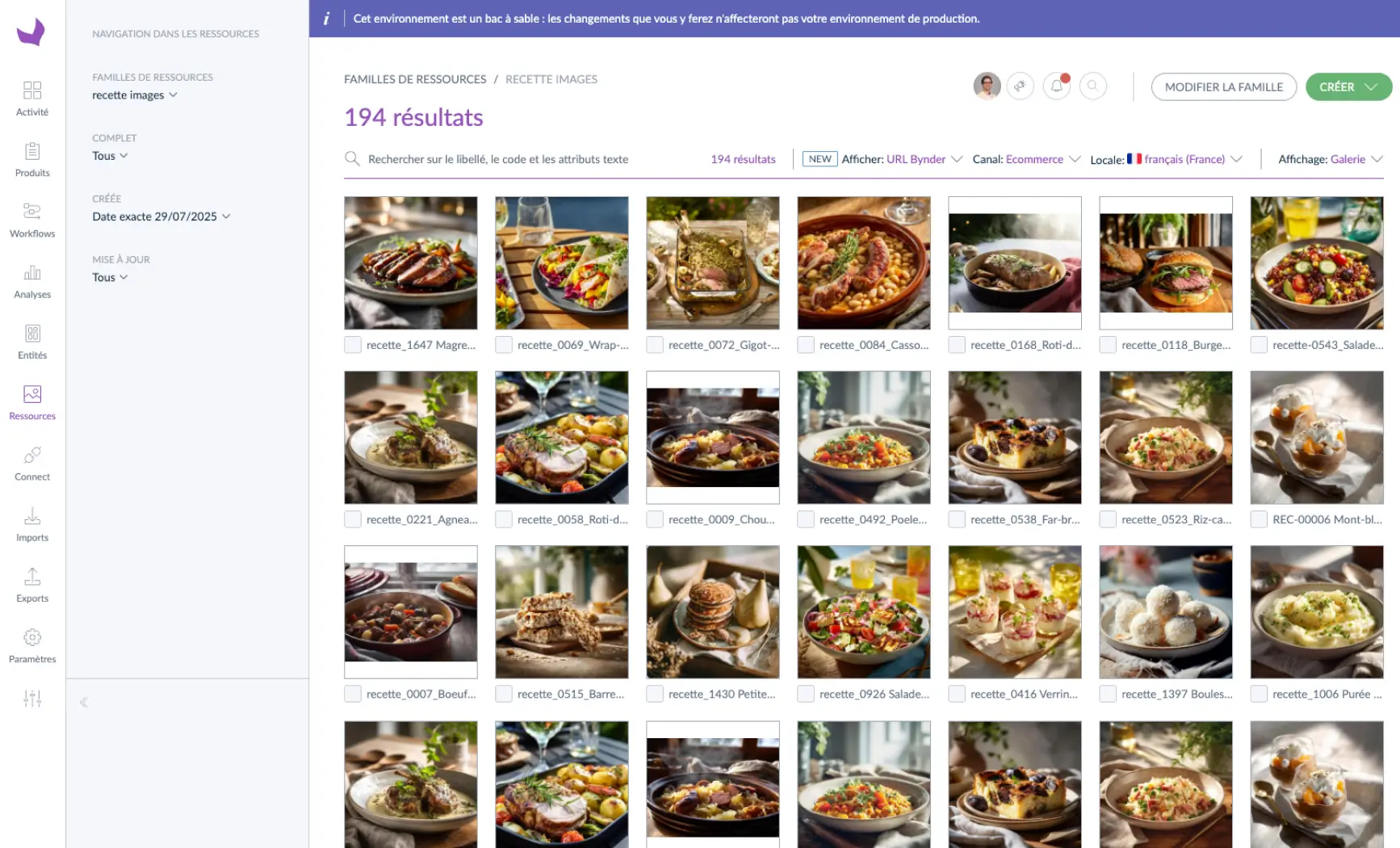 Une première étape s'est déroulé au printemps 2025 afin de structurer les données dédiées au recettes dans le PIM Akeneo.