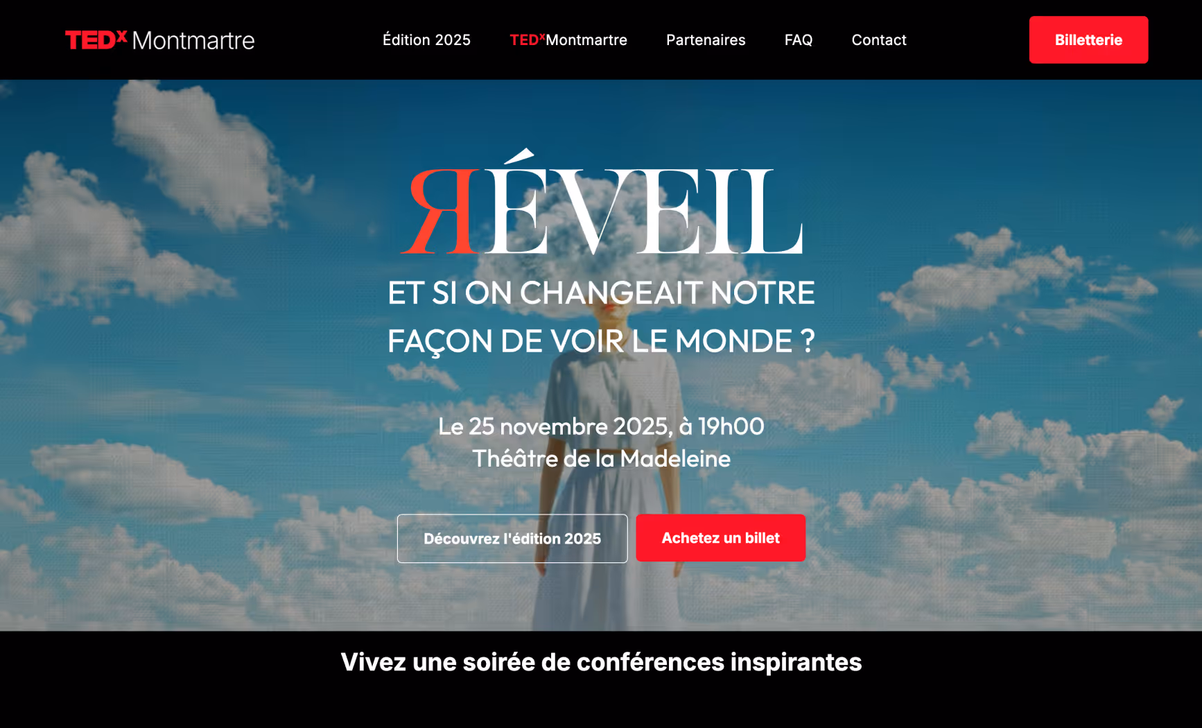 Nous avons accompagné les équipes de TEDxMontmartre dans la création des principaux visuels de l'édition 2025, ainsi que le travail d'ergonomie, de design et de développement du site web .